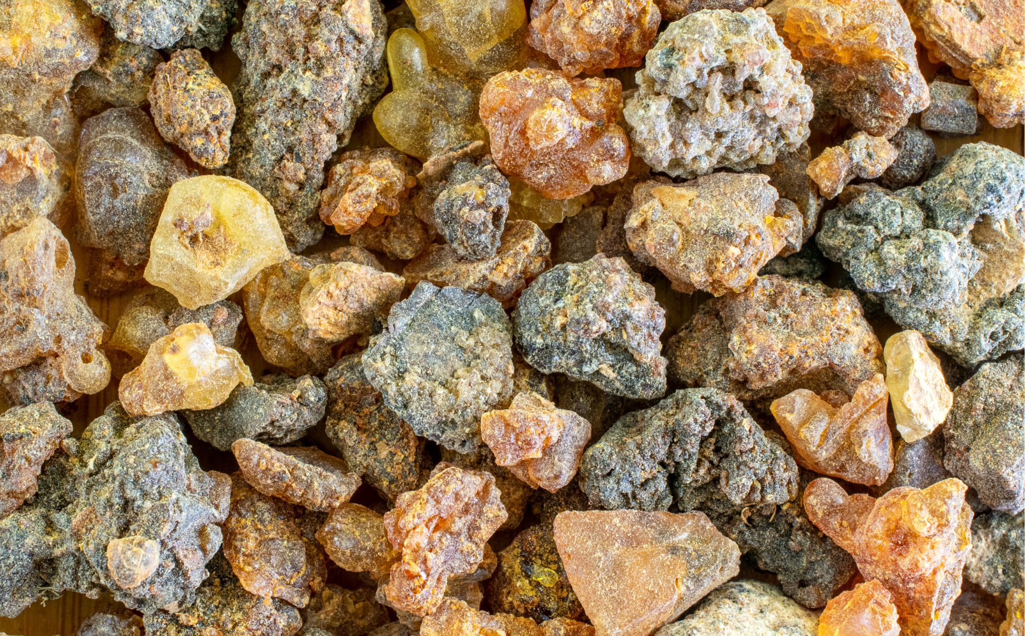 Myrrhe ist ein Baumharz und wird als Räucherwerk und in der Volksheilkunde (z.B. gegen Entzündungen aller Art) verwendet.